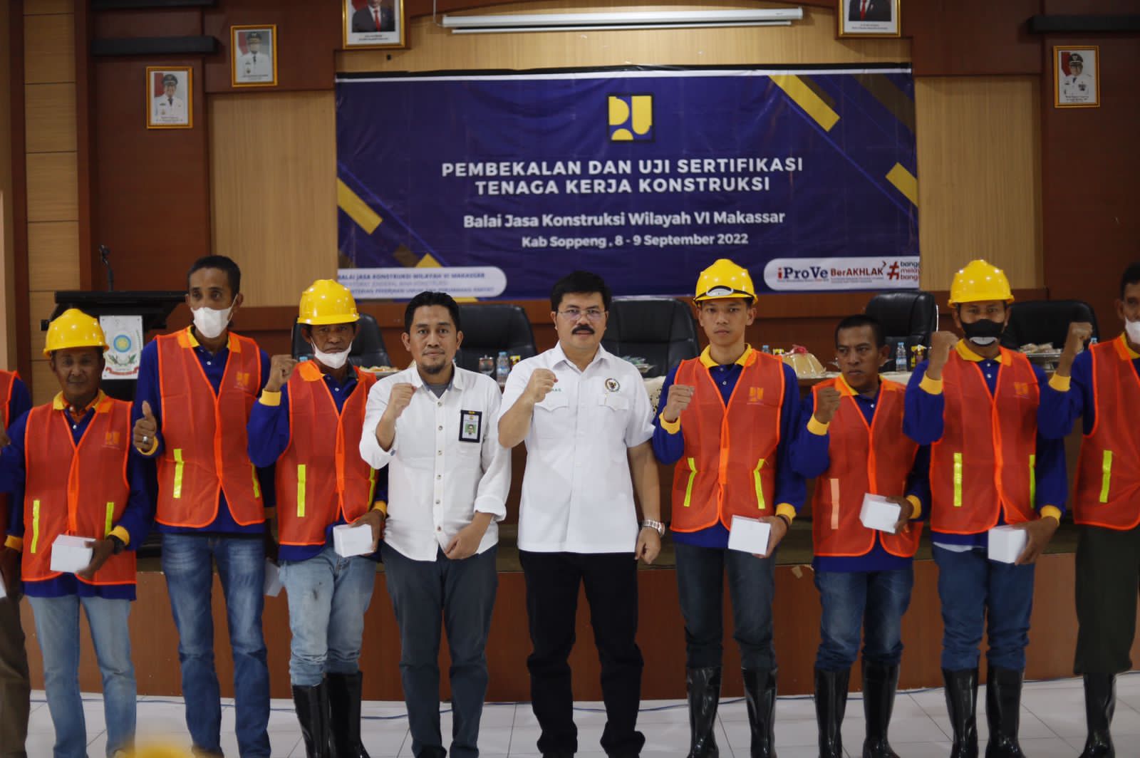 SaudagarNews,Soppeng—Kementerian Pekerjaan Umum dan Perumahan Rakyat (PUPR) melalui Balai Jasa Konstruksi Wilayah VI Makassar bekerjasama dengan Dinas PUPR Kabupaten Soppeng menyelenggarakan Pembekalan dan Uji Sertifikasi Tenaga Kerja Konstruksi di Aula Dinas Pendidikan jalan Salotungo, kamis (8/9/2022).
