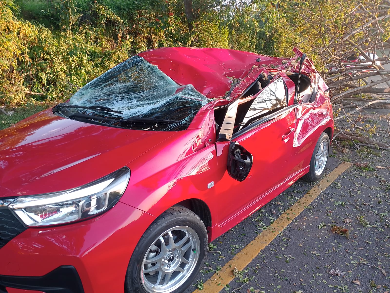 Akibat kejadian tersebut, mobil mengalami kerusakan parah. Meski demikian, pengemudi dan penumpang dipastikan selamat dan tidak mengalami luka.