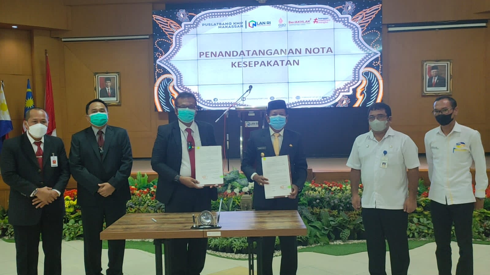 SaudagarNews,Soppeng—Pemerintah Daerah (Pemda) Kabupaten Soppeng dalam hal ini Bupati Soppeng, HA Kaswadi Razak melakukan penandatanganan memorandum of understanding (MoU) dengan Lembaga Administrasi Negara (LAN) di Aulah Pislatbang KMP LAN RI Makassar, rabu (9/3/2022).