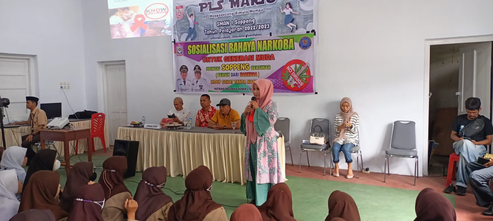 Drg Nirwana selaku pemateri dari Dinas Kesehatan Soppeng mengungkapkan bahwa Bahaya Narkoba bukan saja menjadi bahaya di Kabupaten Soppeng tetapi merupakan Ancaman Internasional karena dapat merusak sendi kehidupan bangsa.