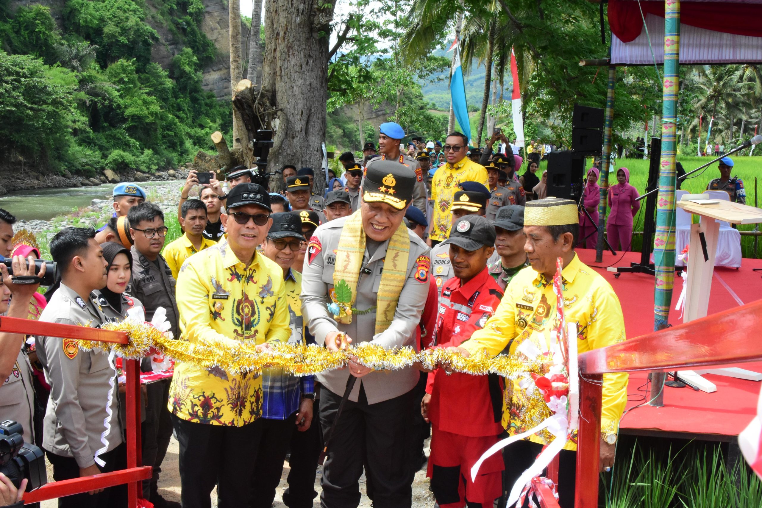 Poto peresmian jembatan gantung Lakellu dilakukan Kapolda Sulsel Irjen Pol. Djuhandhani Rahardjo Puro, S.H., M.H.