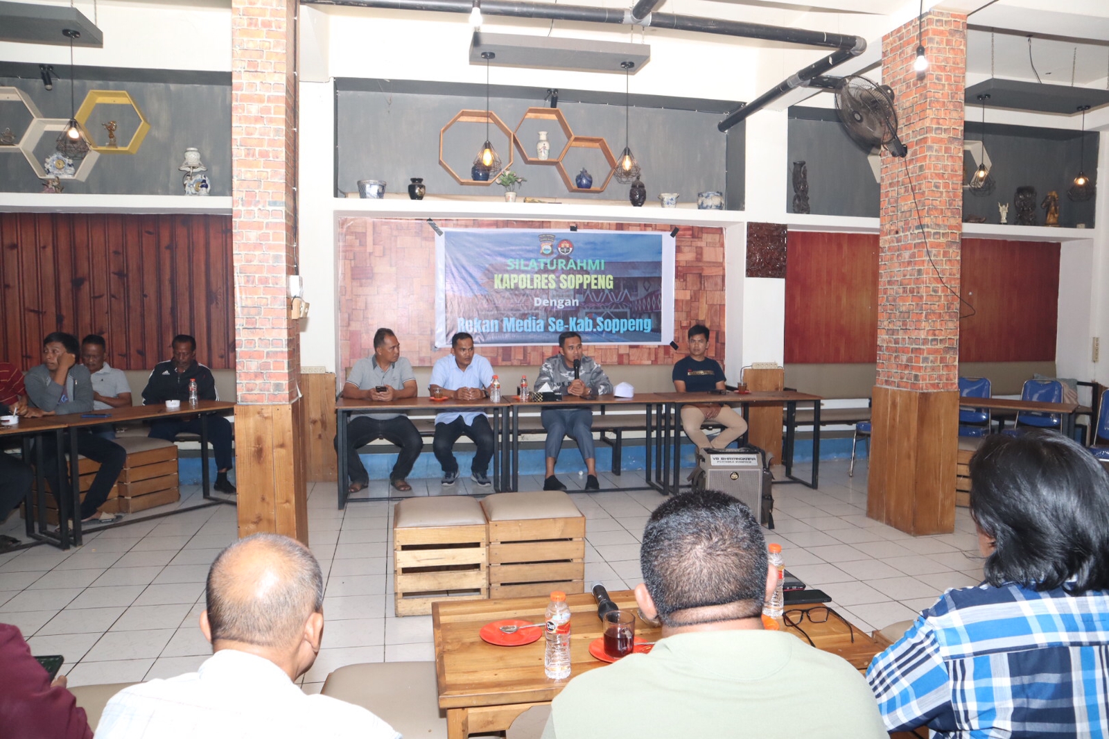SaudagarNews,Soppeng—Kapolres Soppeng AKBP Dr. H. Muh. Yusuf Usman S.H S.I.K M.T. bersama sejumlah wartawan yang tergabung dari media cetak dan online melakukan audiens di jalan Cafe Prima jalan Kalino, Kelurahan Botto, Lalabata, Soppeng, jum’at malam (13/1/2023).