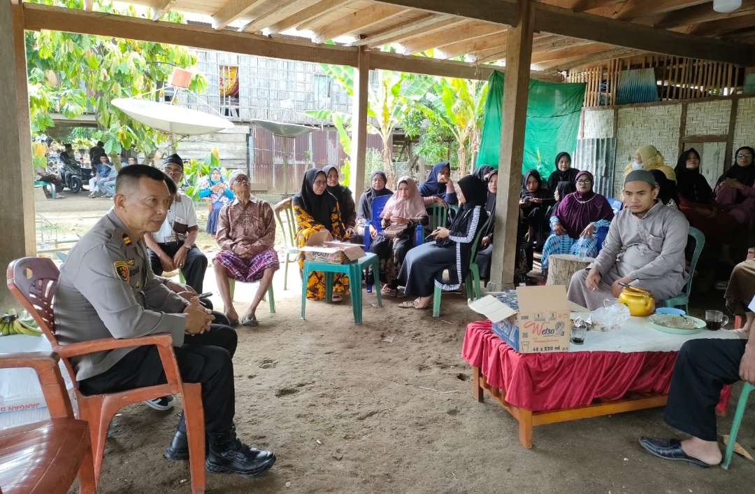 SaudagarNews,Soppeng—Kepala Kepolisian Sektor (Kapolsek) Ganra Iptu Asdar, S.Sos melayat di rumah Hj. Tira yang merupakan korban tenggelam di sungai Walennae kemarin.