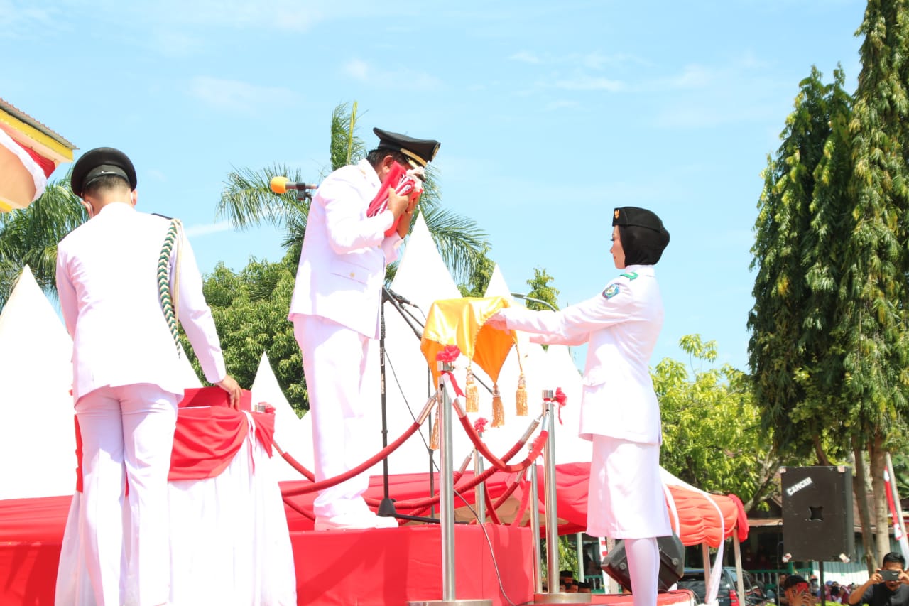 Detik-detik pengibaran Bendera Merah Putih ditandai suara sirine dilanjutkan dengan pembacaan teks Proklamasi oleh Ketua DPRD Kabupaten Soppeng H.Syahruddin M Adam.