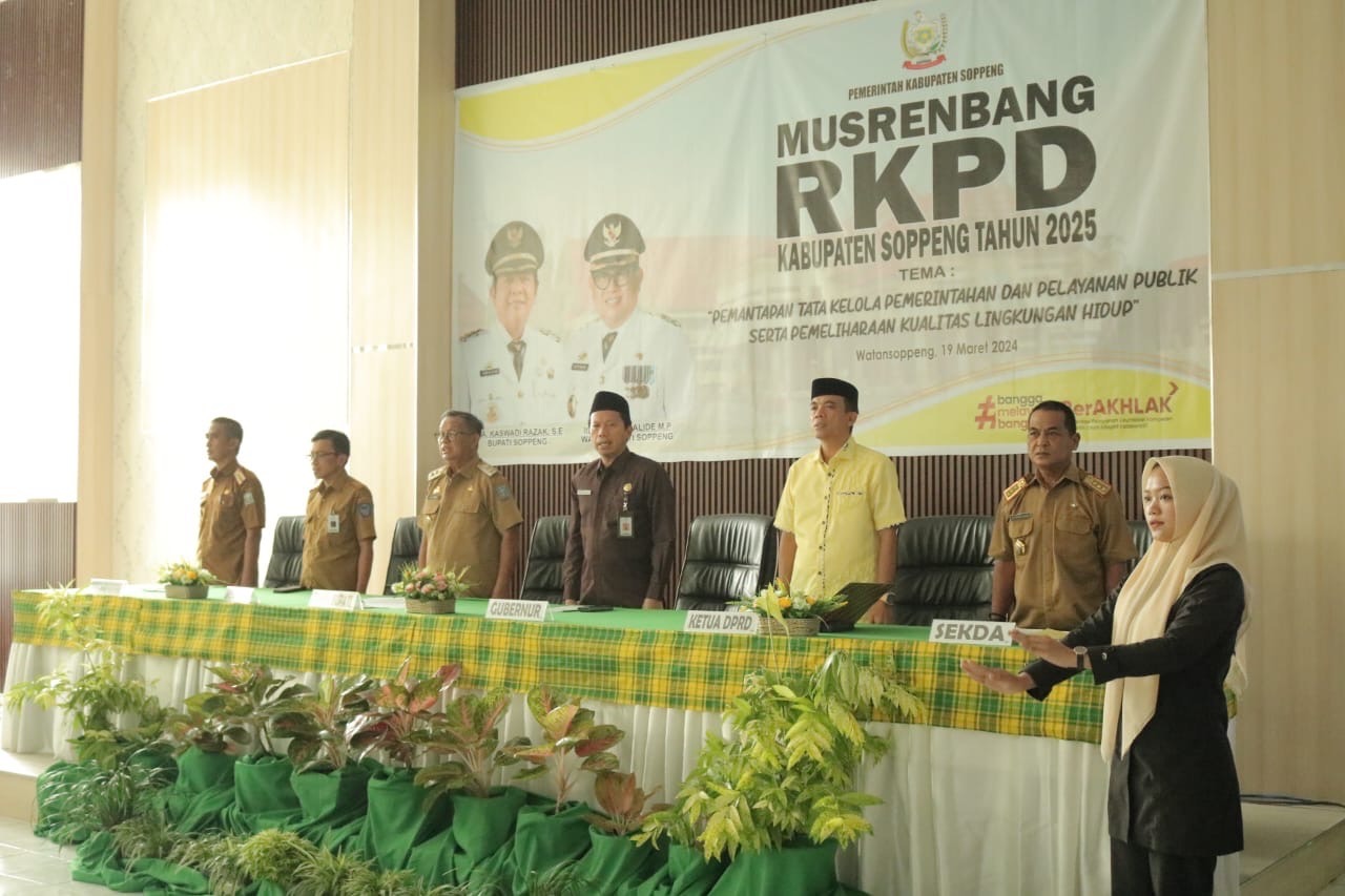 Laporan Kepala Bappelitbangda Kab. Soppeng, Andi Agus Nongki, S. IP, M. Si. Pelaksanaan Musrenbang RKPD Kabupaten Soppeng Tahun 2025 merupakan rangkaian tahapan yang dilaksanakan dalam penyusunan perencanaan pembangunan tahunan.