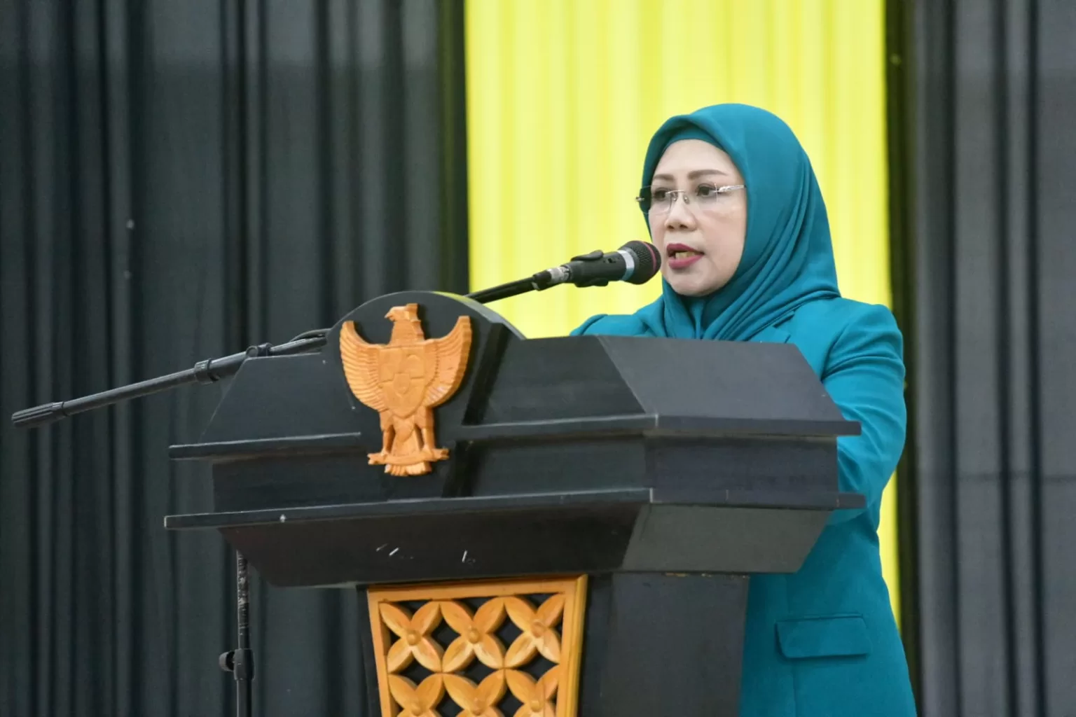 Ketua TP PKK Kabupaten Soppeng Ny.Hj.Nurjanah Kaswadi pada momentum ini membacakan sambutan Ketua Umum TP PKK.