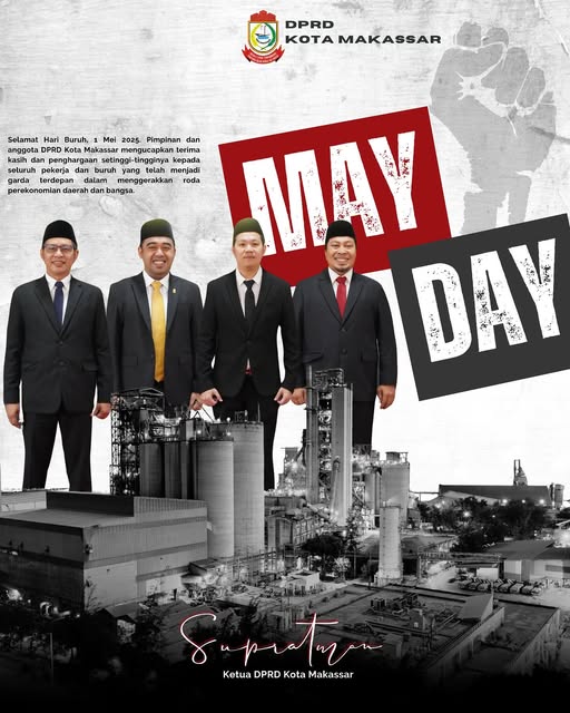 Saudagar.News, Makassar – Pimpinan dan anggota DPRD Kota Makassar mengucapkan selamat memperingati Hari Buruh atau May Day tahun 2025. Kamis (1/5/2025).