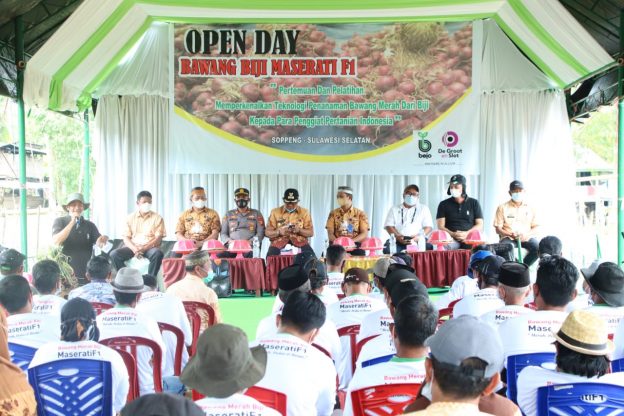 SaudagarNews,Soppeng—Perusahaan benih yang berbasis di Belanda, Bejo Indonesia, menggelar pelatihan inovasi teknologi baru penanaman bawang merah dari biji varietas Maserati F1 kepada petani di Desa Marioriaja, Kecamatan Marioriwawo, Kamis (14/10/2021).