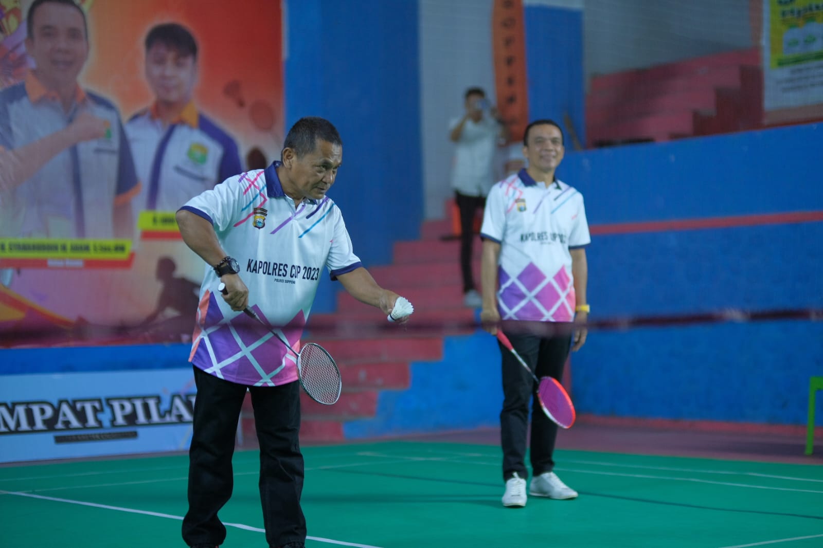 SaudagarNews,Soppeng—SaudagarNews, Soppeng —Pembukaan Turnamen Bulu Tangkis SE-Kabupaten Soppeng Kapolres CUP 2023, dalam rangka memperingati Hari Bhayangkara ke – 77 Tahun yang dilangsungkan di Gedung Koni Watansoppeng, Selasa (Malam), 6 Juni 2023.