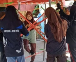 Ramlah Sukardi, S.Pd, M.Pd merupakan salah satu guru SMPN 1 Donri-Donri mengatakan kegiatan latihan kepramukaan kali ini dilakukan ialah teknik tali temali dalam membuat menara kali 4.