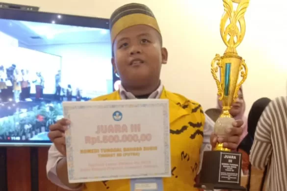 SaudagarNews,Soppeng—Sahrul Ihsan, siswa SDN 37 Kabaro, Kecamatan Donri-donri,Kabupaten Soppeng berhasil keluar sebagai juara tiga pada Festival Tunas Bahasa Ibu (FTBI) 2023 tingkat Provinsi Sulawesi Selatan Kategori Komedi Tunggal Putra jenjang SD yang di laksanakan di Hotel Aryaduta Kota Makassar. Sabtu,11 November 2023.
