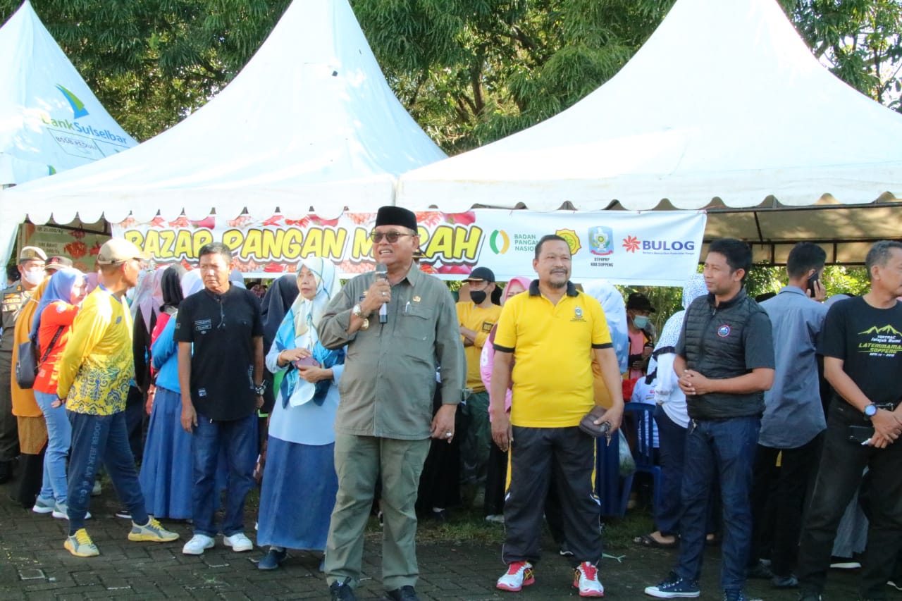 SaudagarNews,Soppeng—Pemerintah Kabupaten Soppeng menggelar bazar pangan murah di halaman Kantor Bupati Soppeng, jumat (23/9/2022).