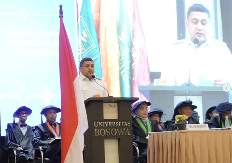 Saudagar.News, Makassar – Wali Kota Makassar Munafri Arifuddin memberikan sambutan pada Pengukuhan Tiga Guru Besar Universitas Bosowa, yang digelar di Balai Sidang 45 Universitas Bosowa, Jalan Urip Sumoharjo, Rabu (7/1/2026).